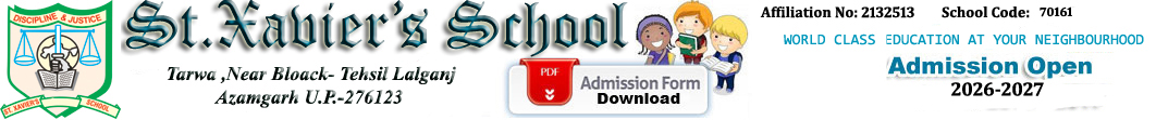 We at St.Xavier's School believe that each child entrusted to us will receive education in its finest form. Learning is a lifelong process & all student & teacher are challenged to exceed their own expectations. This is a holistic experience that synergizes the growth of mind, Body spirit. We nurture & prepare generations of individuals, the torch bearers of tomorrow. Who believe in the strength of their own convictions & take pride in being Indian. They will work together in the spirit of global citizenship. Our Work is school shapes the future and no constraints shall daunts us.